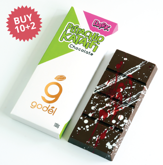 It’s Godel’s version of the viral chocolate bar using our bean to bar chocolate, filled with crunchy kataifi and pistachio paste, which we meticulously made from scratch.